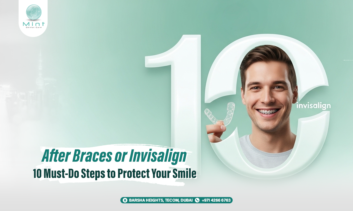 Finished braces or Invisalign? Discover 10 must-do steps to protect your smile, prevent teeth from shifting, and keep your results looking great with Mint Dental Care in Dubai.